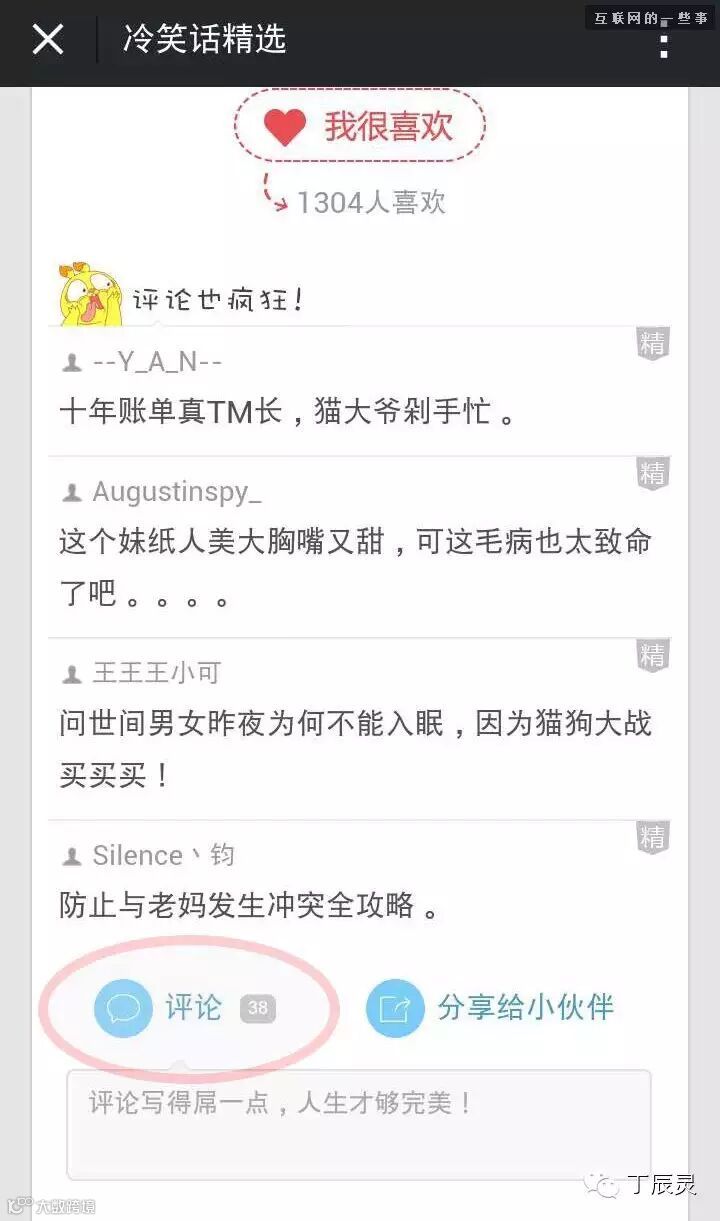 鸡汤笑话类账号不需要评论,这里在补充一点十分充分的证据。其实从微信公众账号诞生之处冷笑话精选就一直在走着需要评论的路线,从目前看到的结果就是不需要评论了。此处提到的冷笑话精选就是微博草根大号移植过来的账号。