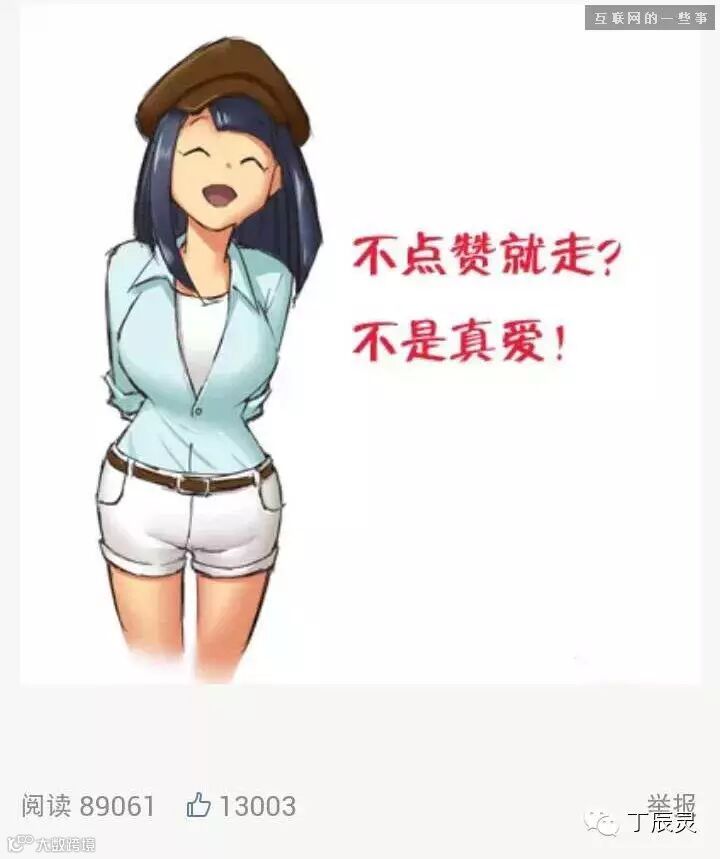 对了,此处补充一点微信公众账号阅读与点赞还有一个十分有意思的情况。假如在图文消息尾部做一个引导用户点赞的动作,那是完全可以让点赞数量陡然上升10倍。这该做何解释呢?毫无疑问,这其实这就是说明用户懒与笨!有的没看见点赞,有的不愿意点赞,而一张醒目引导点赞的图片刺激了用户,所以陡然上升10倍。