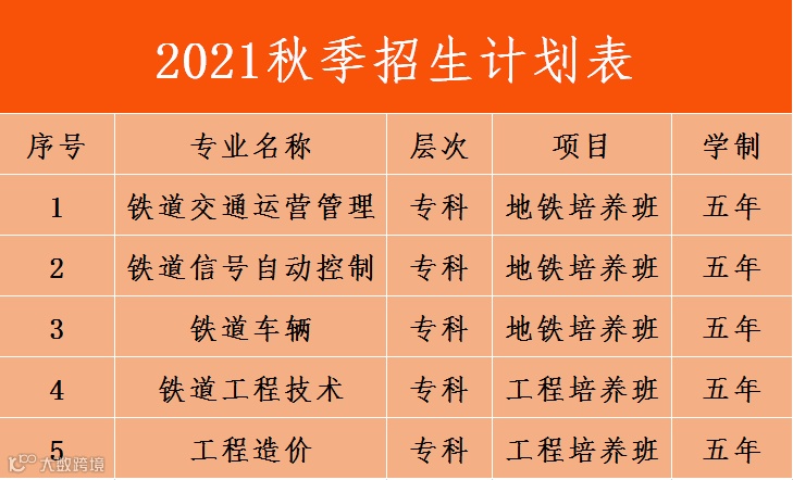 2021年秋季面向江西、浙江招生,培养铁路轨道交通行业乘务员、票务员、安检员、站务员、信号员、列检员、调车员、铁道供电以及铁路施工、监理、质检等专业人才。