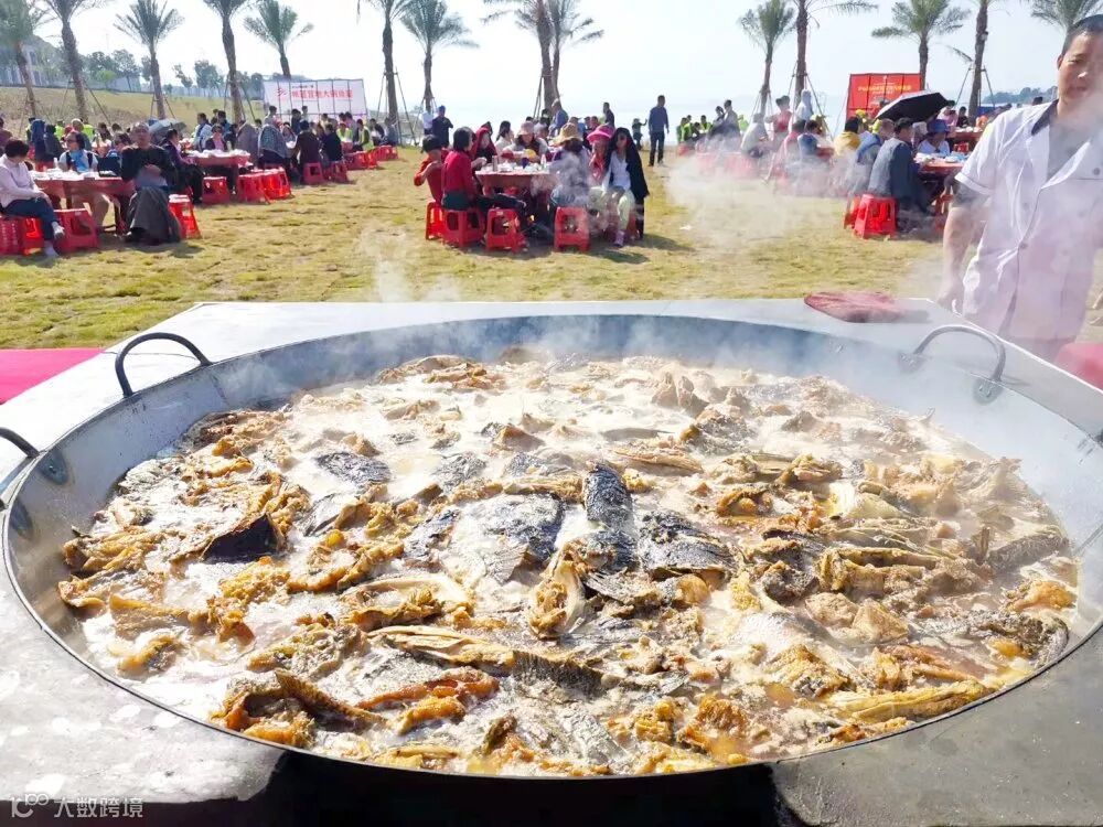 从千名游客中筛选出来的最为幸运的两个人作为开锅仪式的代表,鱼宴即将开始!