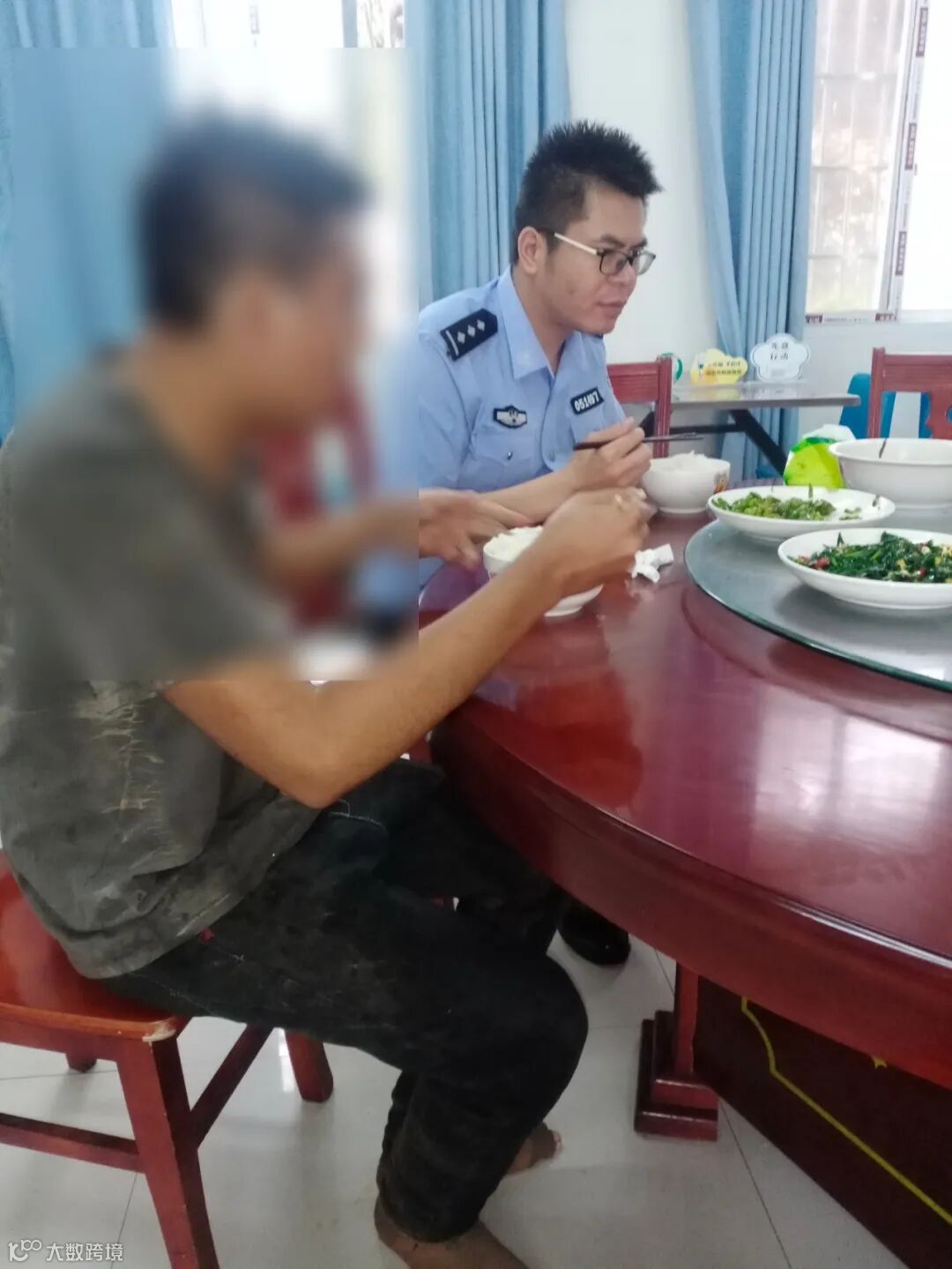 经确认,该男子正是失踪2日的小华。原来小华跑下服务区后一直躲在该桥洞内,已经两天没有吃东西了。在确定小华身体无恙后,民警将小华带回派出所安顿,并立即联系焦急如焚的亲属。由于接警误了饭点,民警为小华热好饭菜,与民警一起用餐。饭桌上民警耐心倾听、尽力开解,得知小华爱吃鸡肉,民警特意将鸡肉端给小华,看着他对着一盘鸡肉“狼吞虎咽”。