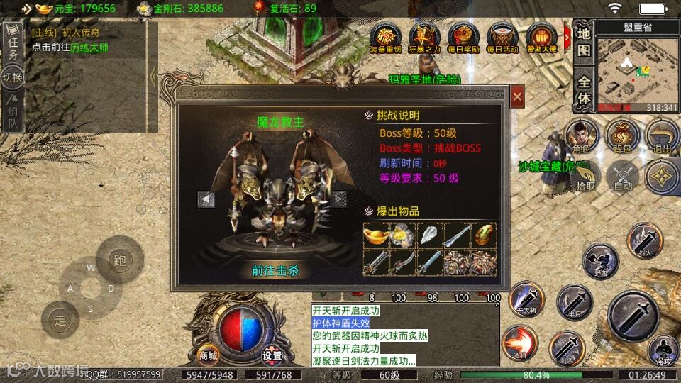 3、挑战每日任务,BOSS首杀,每日送你大量材料,元宝(非绑定),让你战力超群