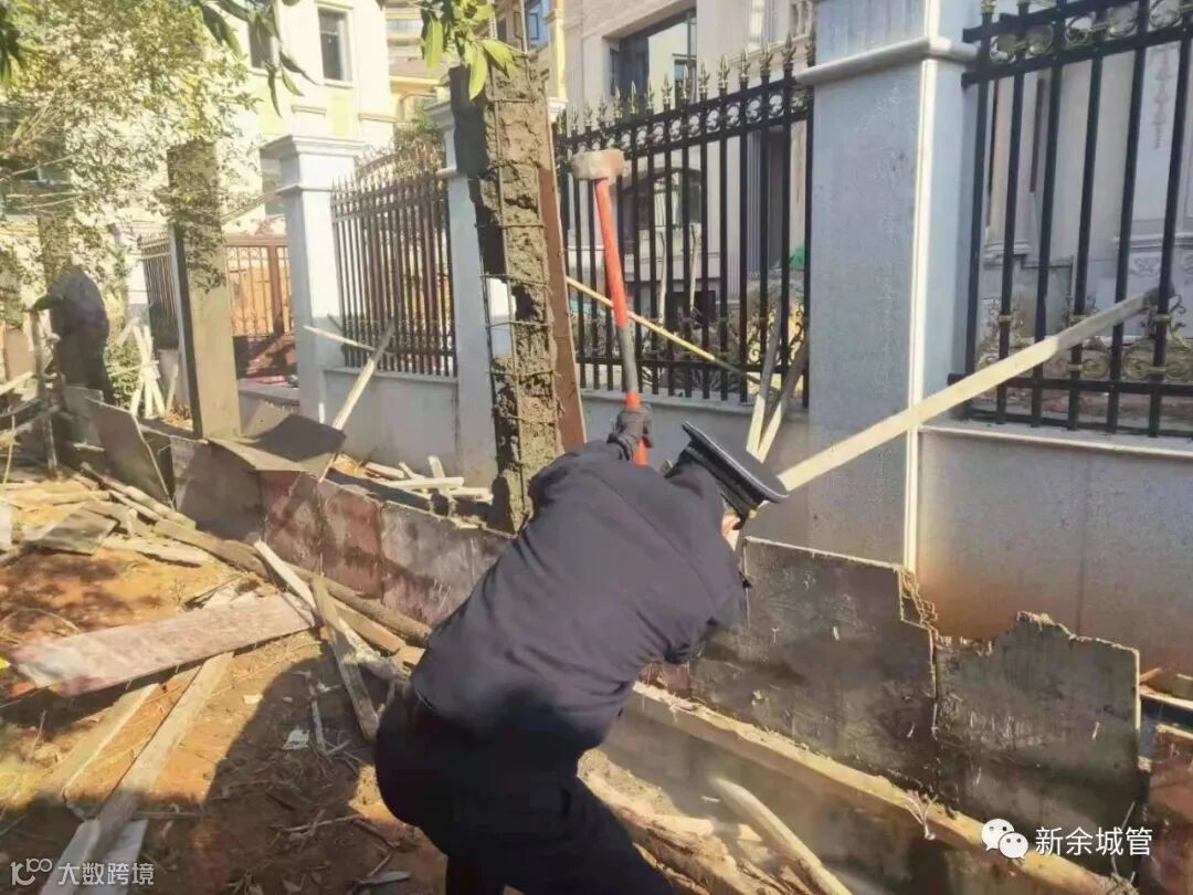 执法队员立即向大队汇报,并果断对违建部分予以拆除,共拆除围墙约15米。