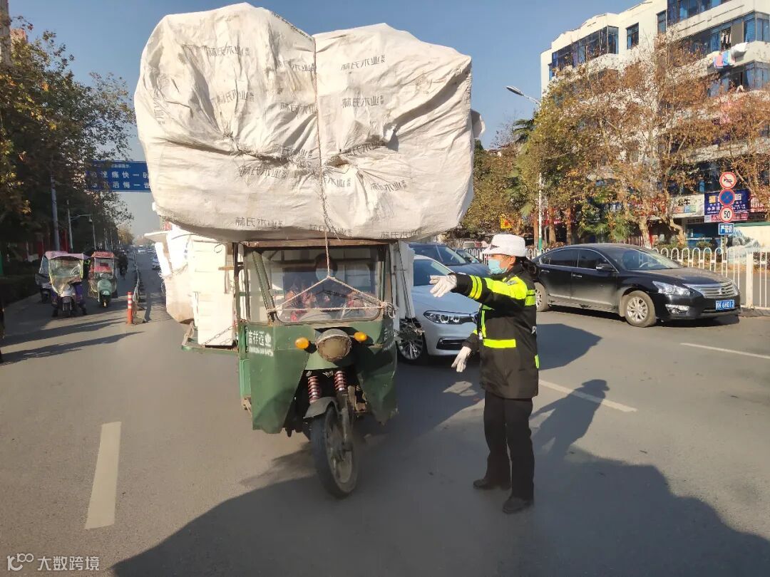 ▲元旦小长假期间,支队民警开展交通违法整治,依法拆除大货车违规装载LED灯。