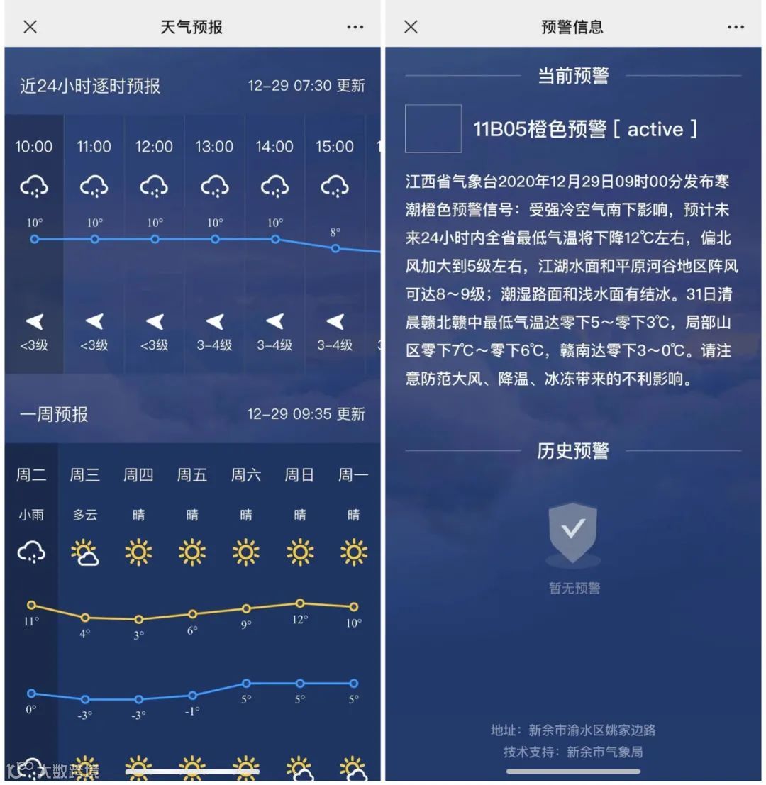 由新余市气象局技术开发的实时新余版天气预报功能正式入驻新余发布微信公众号。即日起市民朋友只要进入“新余发布微信公众号”——菜单栏点击“新余天气”——“天气预报”或“天气预警”就能实时查看啦!