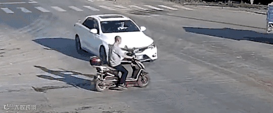 ▲2020年7月27日,新余渝州大道,郭某驾驶二轮电动车闯红灯过路口时,在避过一辆电动车后,一头撞上一辆正常左转的小轿车。因未佩戴安全头盔,郭某在事故中受伤。