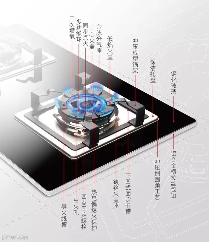 稳焰槽技术,防止汤水溢出堵塞火孔,确保轻松点火。