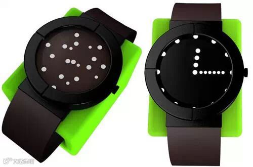 这是由中国设计师吕中方带来的TIWE手表,它的灵感来自于满天繁星。整个OLED表盘屏幕上,布满了大大小小的白色圆点,它们都在随机运动着。当你摇一摇手表的时候,这些小圆点会自动组合成分钟和时钟,显示出当前时间。