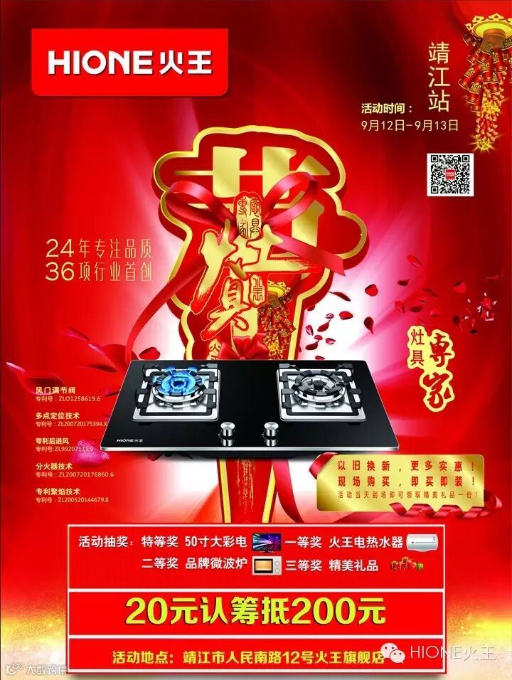 火王老客户燃气灶直接换新灶(指定型号),新客户以旧换新,直接抵扣200元(烟灶消热水器均可)