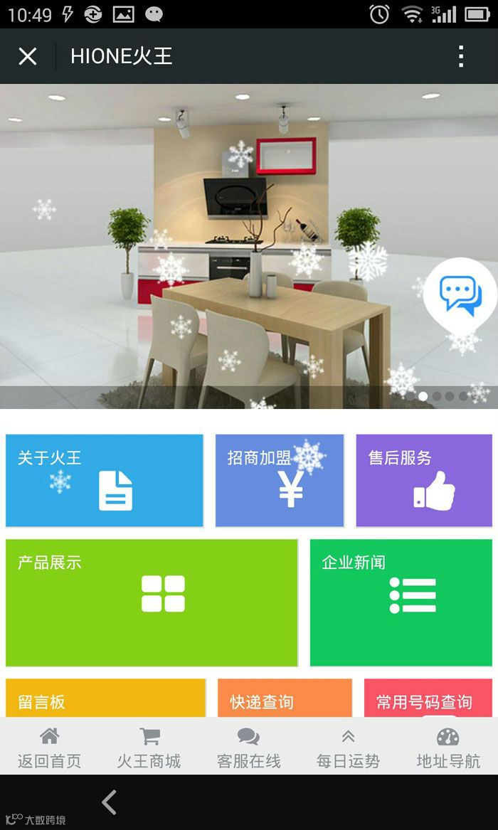火王厨电为了能够在微信端更好的服务用户,更好的让用户体验,不惜人力和财力的投入,与国内第一微信服务商共同完成HIONE1992公众账号的开发搭建,目前整体框架已经完成,细分的功能和用户体验在进一步完善中!首先微信官网模块的搭建根据移动端网站的特点,排版上顶部切屏和动态展示结合在一起,视觉更具体验。那微官网首页的模块开发功能除了展示火王资深的内容外,还引入其它常用的查询功能和小游戏,让你可以查自己所想,而无需另外打开其它,无聊的时候可以娱乐娱乐。众多丰富应用还需您搜索关注HIONE火王或是火王厨电官方微信账号HIONE1992