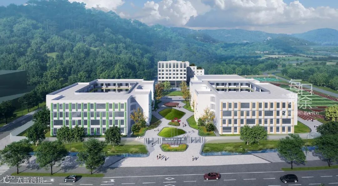 新建教学楼、综合楼、食堂、报告厅、300米塑胶跑道、篮球场、游泳馆、乒乓球场及羽毛球场等,共设计48个教学班,新增学位2100个。