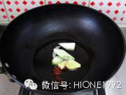 5. 锅中注入油,烧热爆香葱姜和八角。