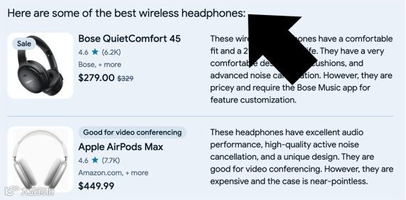 在搜索引擎优化之前,评论对搜索引擎优化已经非常重要。但迄今为止,谷歌还没有明确推荐过产品。SGE 的结果似乎是直接推荐产品。