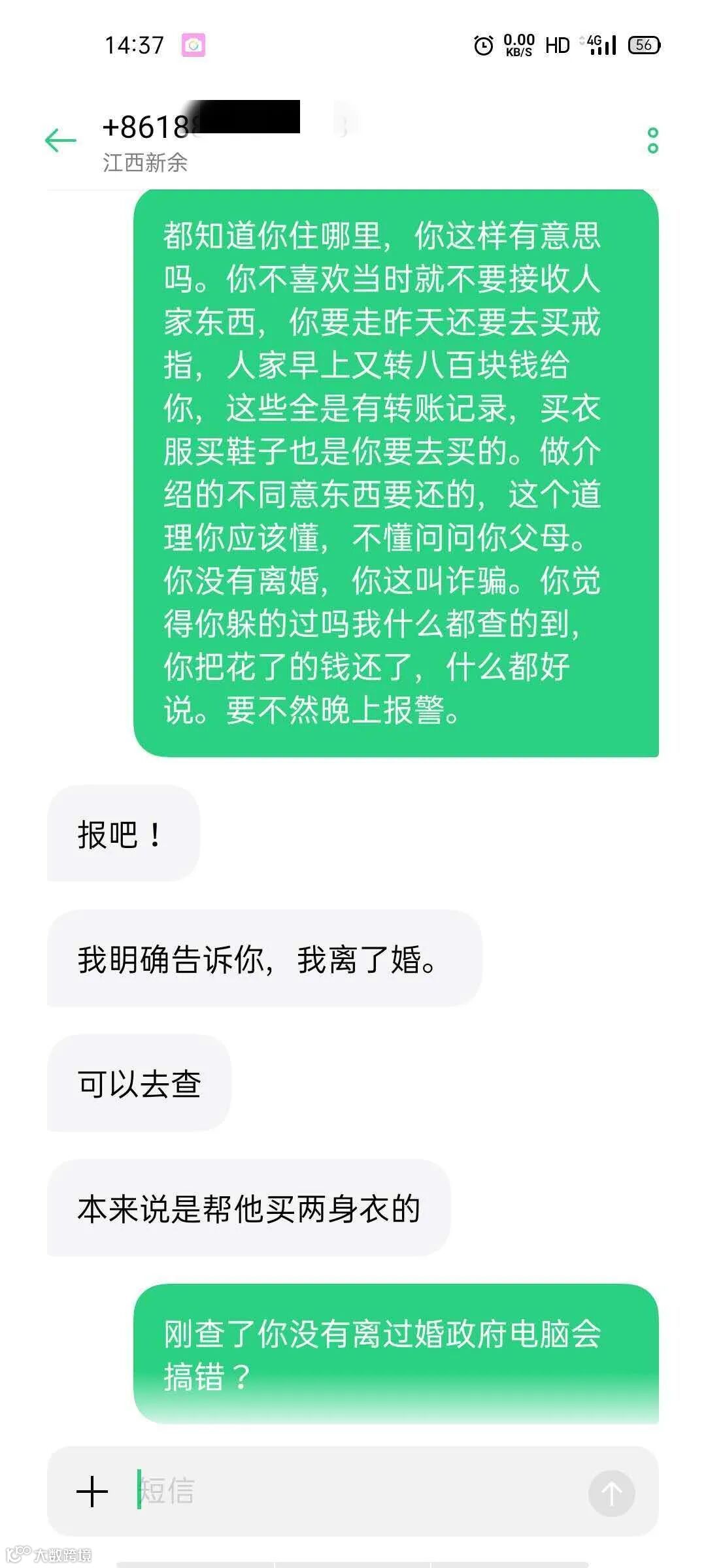 爆料者称自己认识的这名付姓女子谎称自己已经离婚,然后爆料者说要给她介绍一个男朋友,随后就把自己的朋友介绍给了这位付姓女子。随后该名付姓女子在爆料者朋友这花费了不少钱之后竟然溜之大吉。
