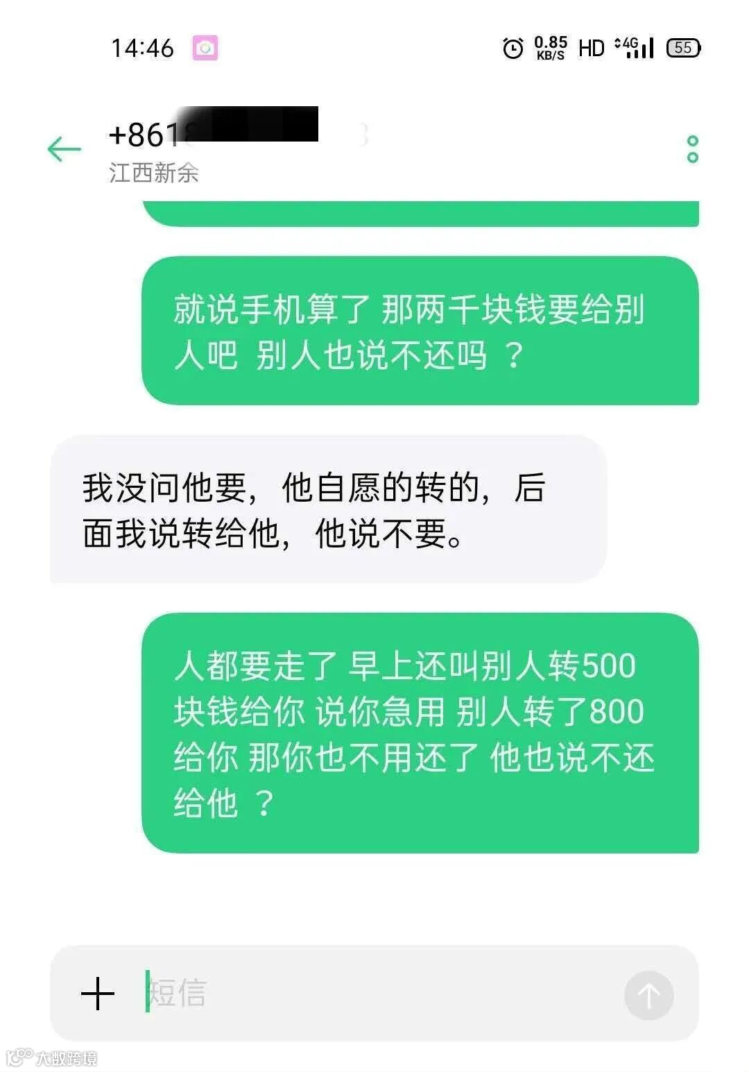 事后爆料者与付姓女子对话,希望对方能够将钱转回给自己的朋友。