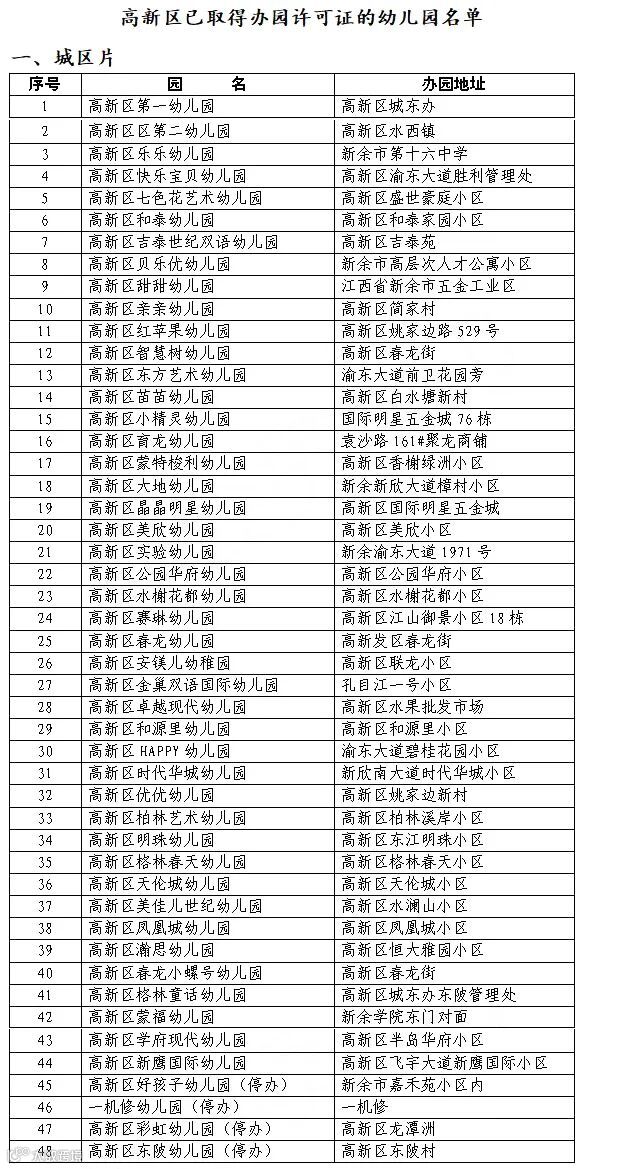 新余市教育局公布新余最新353家有证幼儿园名单