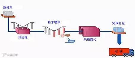 粉末喷涂:用喷粉设备(静电喷塑机)把粉末涂料喷涂到工件的表面,在静电作用下,粉末会均匀的吸附于工件表面,形成粉状的涂层;粉状涂层经过高温烘烤流平固化,变成效果各异(粉末涂料的不同种类效果)的最终涂层。