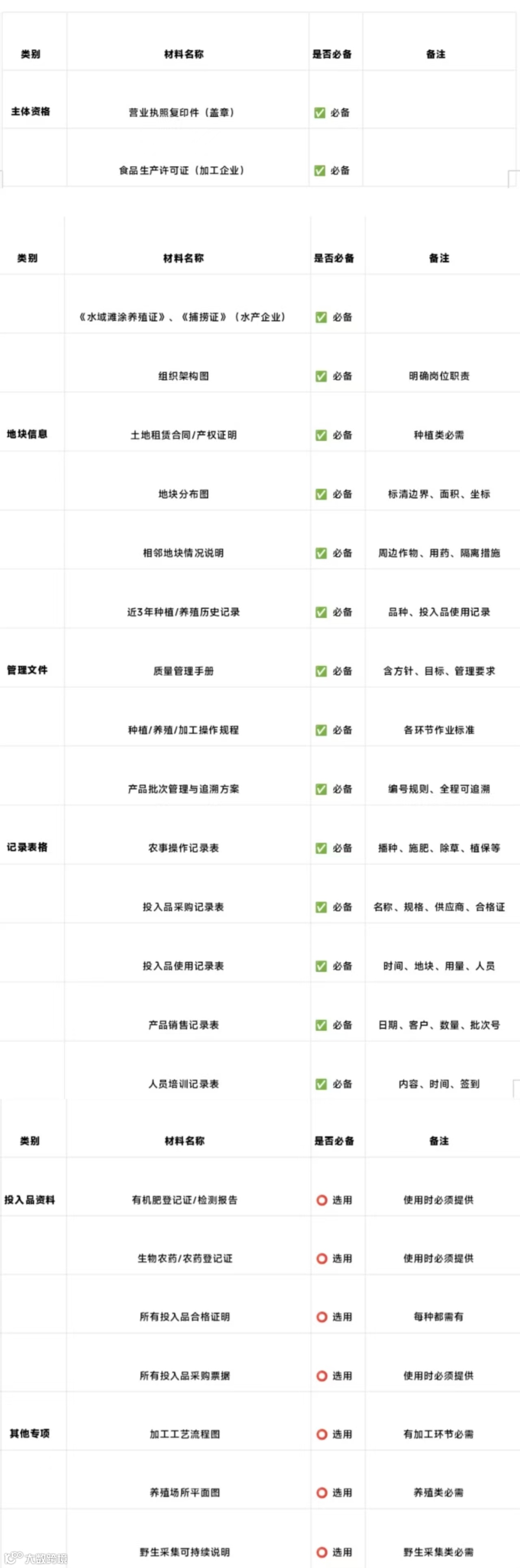文末福利:有机认证必备材料清单(可直接打印对照)