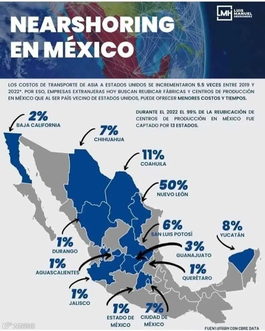 墨西哥各州“近岸外包”份额