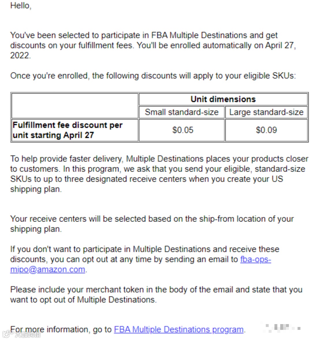 如果不同意,只需要往“fba-ops-mipo@amazon.com”邮箱中回复邮件,附上商户令牌,并说明退出分仓服务即可。