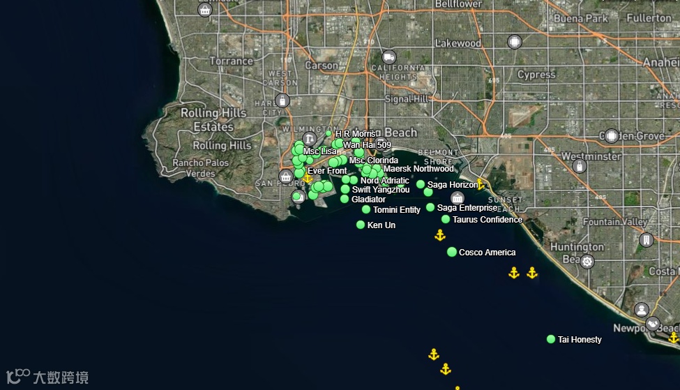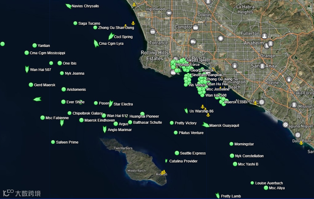 2021年10月20日 LA/LB港口外船舶分布图↑↑↑
