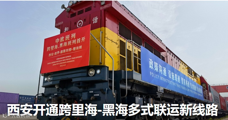 首趟列车满载服装、运动器材等物品,从西安出发,向西由霍尔果斯口岸出境,在位于里海沿岸的哈萨克斯坦港口阿克套港换装至轮渡,横跨里海,在对岸的阿塞拜疆巴库港换回铁路运输前往格鲁吉亚的波季港,从这个黑海港口出发,再次搭乘轮渡至康斯坦察港,途经东欧直抵目的地德国曼海姆。