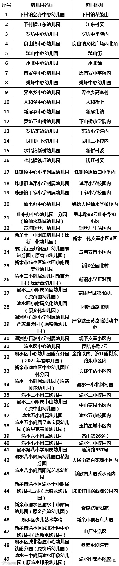 秋季开学在即,你还在为孩子去哪儿读幼儿园发愁吗?现渝水区公办幼儿园火爆招生中。截至当前,渝水区共有49家公办幼儿园,现将名单告知各位家长,敬请查收~