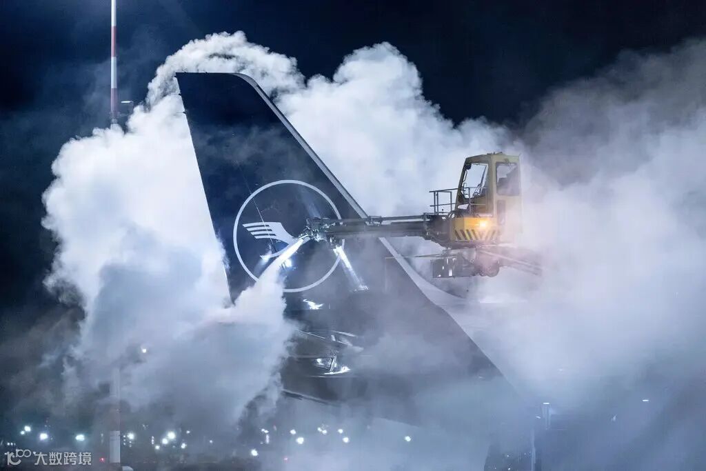 周三汉莎航空的一架飞机在法兰克福机场进行除冰