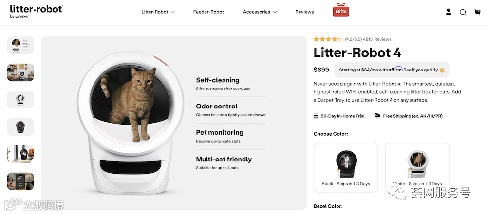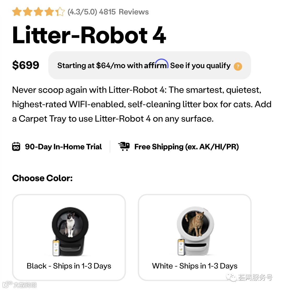 因此,Brad只是把已经淘汰的上一代商品Litter Robot 3在亚马逊上销售,而第四代产品根本就没有在亚马逊上发布,现在完全通过官网独立站和经销商在销售。