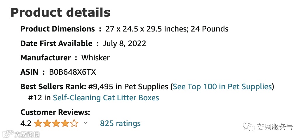 由于Litter Robot在谷歌和线下的影响力较大,而且品牌沉淀时间已经很久,因此即便Brad现在没有在亚马逊上投入很高的广告费,但是第三代产品上架一年半的时间里在亚马逊也获得了800多个评价,宠物类目大类排名#9495名,精准类目排名#12名。