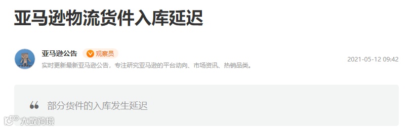 5月12日,亚马逊物流官方紧急发布货物入库延迟公告。