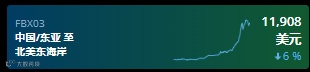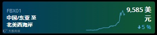 6月10日最新一期波罗的海货运指数(FBX)显示,在跨太平洋货运方面,亚洲至美西的运价下跌5%即491美元至9585美元/FEU(包括保费),亚洲至美东的运价下跌6%即755美元至11908美元/FEU。