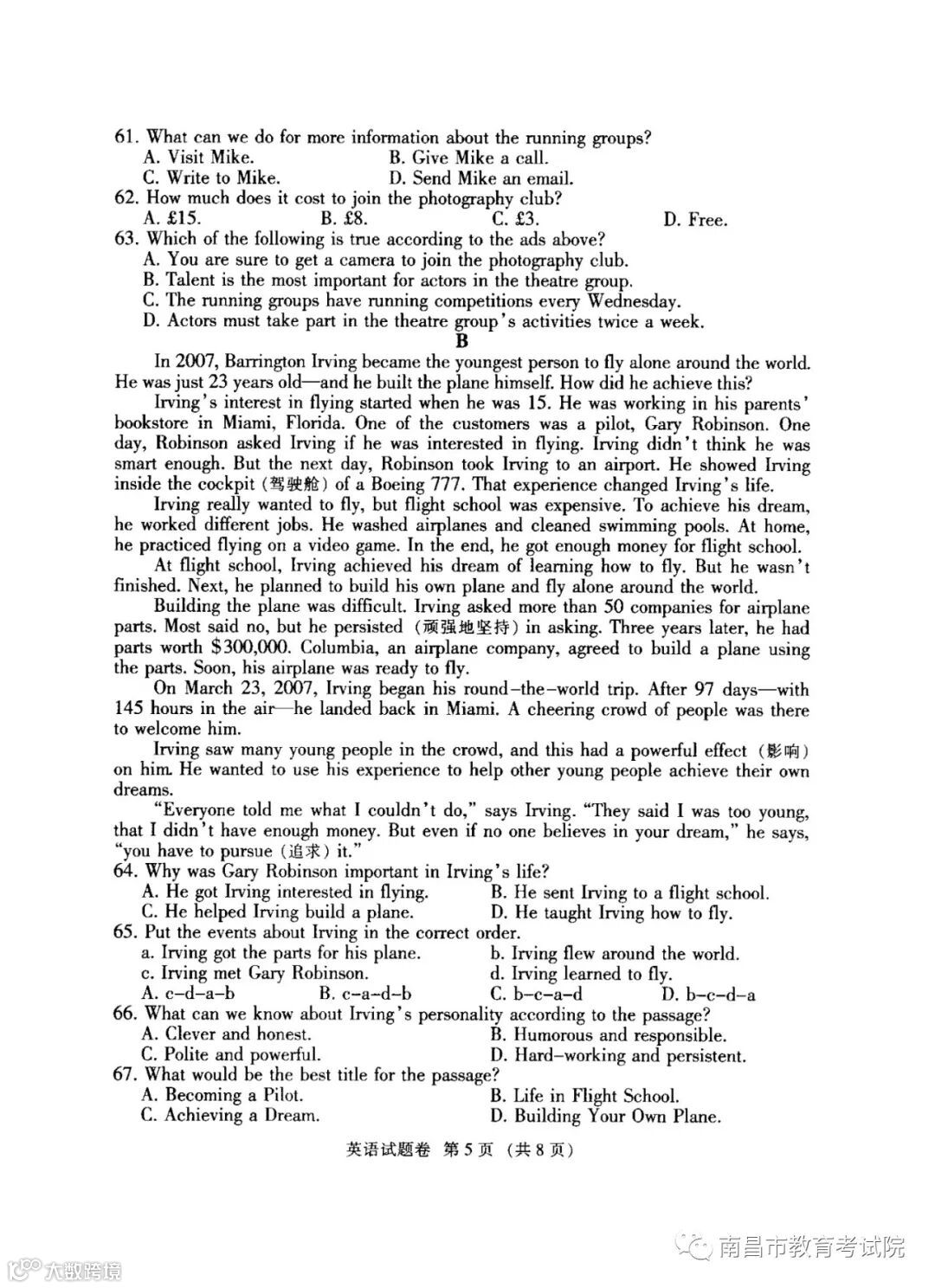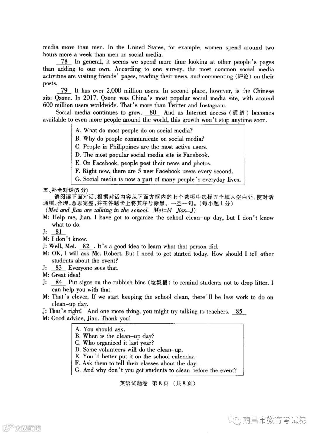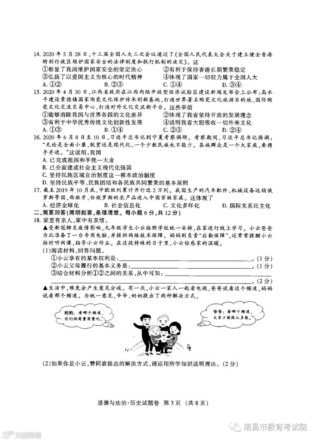(↑扫描上方二维码可下载江西省2020年中考试卷及参考答案)