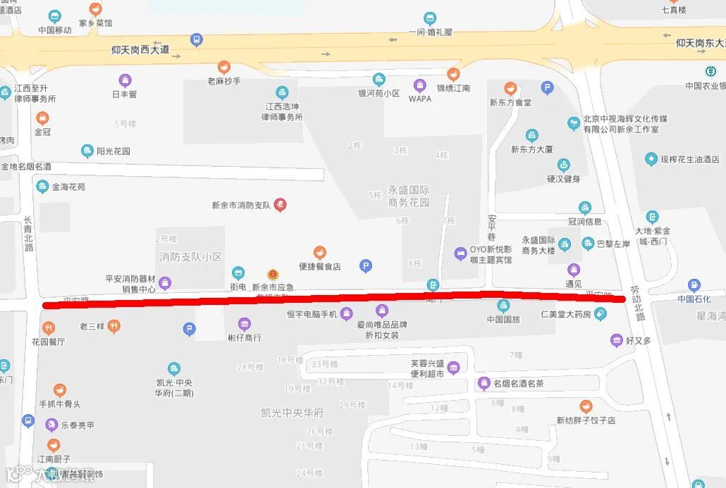 劳动北路——渝水区消防大队门口(北侧道路封闭) |