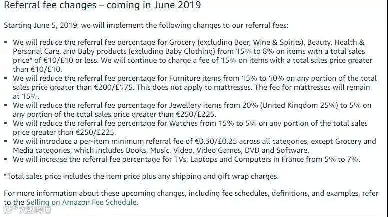 亚马逊欧洲站的新费率政策将在6月5日生效,主要变更涉及以下的几个类目
