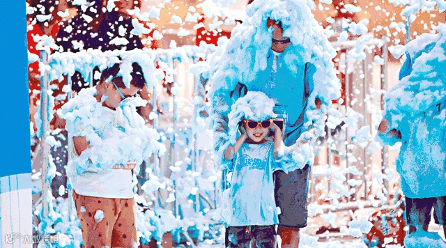 和孩子一起沐浴在泡沫的海洋