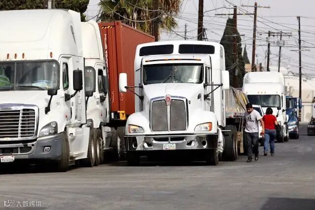 公路上常常看到等待提货或还回集装箱的卡车在排长龙。