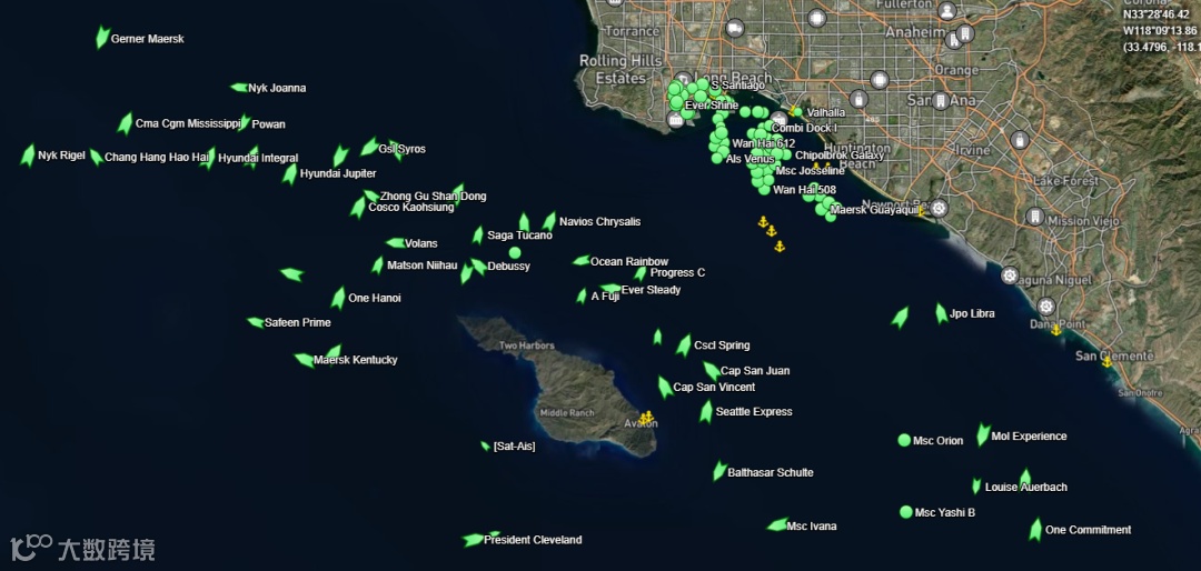根据南加州海洋交易所数据库,洛杉矶和长滩码头停泊或停靠区的集装箱船数量已超过80艘,有些集装箱船需要等待数周才能开始工作。