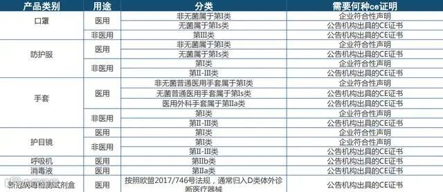 (各类防疫物资所需CE证明明细表)