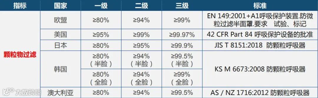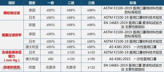 (医用口罩标准对比)