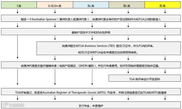 澳大利亚将医疗器械分为I类,Is and Im, IIa, IIb, III类,产品分类几乎和欧盟分类一致。如果产品已经获得CE标志,则产品类别可以按照CE分类。