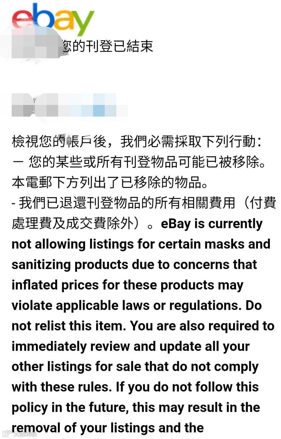eBay上的口罩链接全被删了。