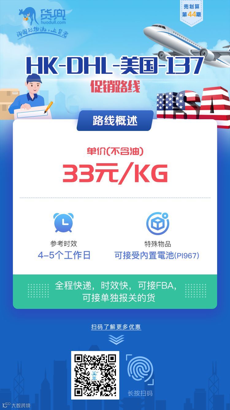 兜划算 | 香港DHL发美国4-5个工作日,33元/kg起