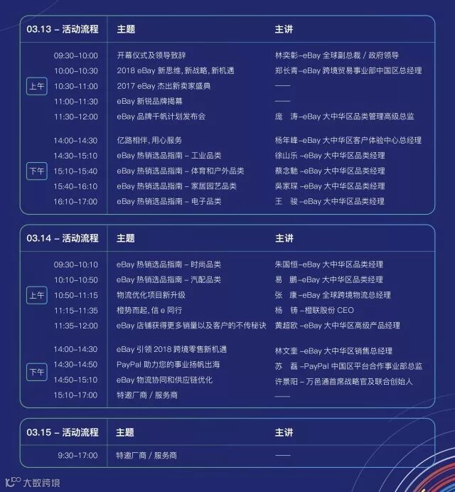 2018年 3月13日-15日,“2018 eBay超级发布会”将在福建省福州海峡国际会展中心盛大揭幕。作为2018年的开年诚意之作,此次“eBay超级发布会”聚合了eBay品类管理团队、eBay卖家培训团队、eBay客户服务团队,为大中华区卖家带来72小时不间断的eBay纯干货分享!
