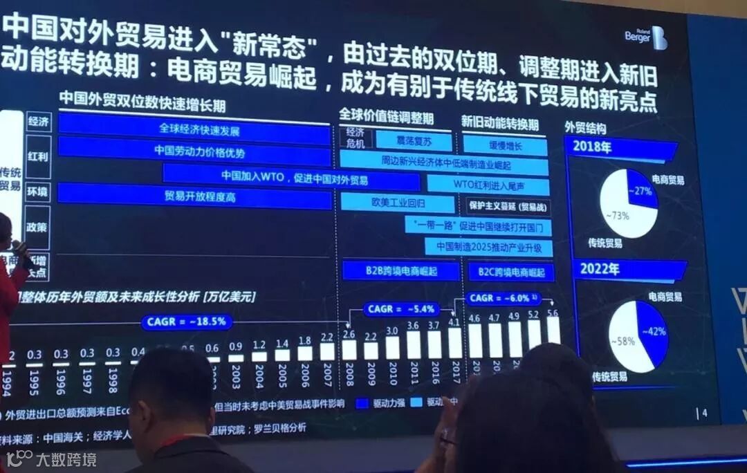 此后进入第三阶段新旧动能转换期,CAGR预期回到6%左右。在外贸结构中,2018年传统贸易与电商贸易比例分别是73%和27%,预计2022年为58%和42%。