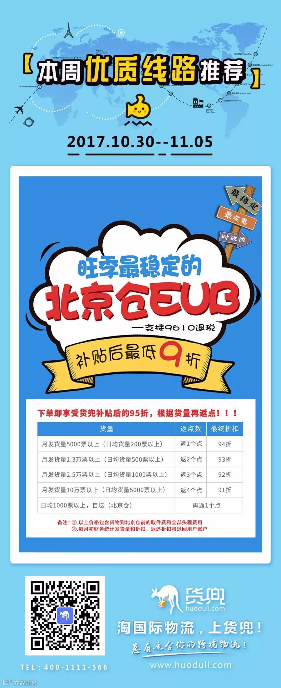月发货量1.3万票以上(日均货量500票以上)补贴至93折