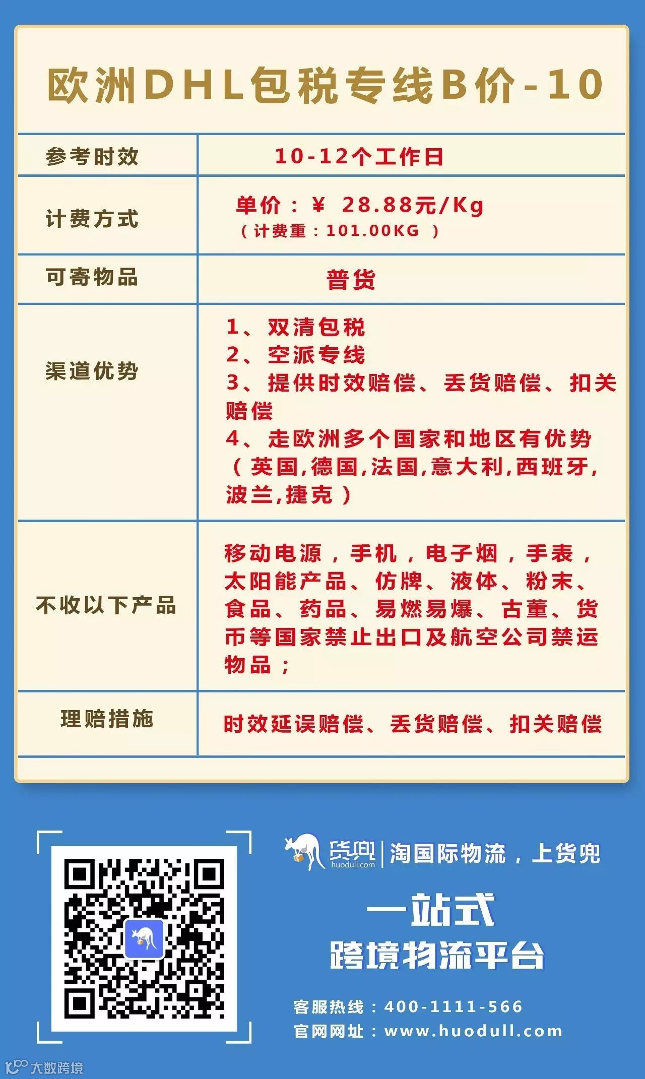 欧洲DHL包税专线B价-10 优势