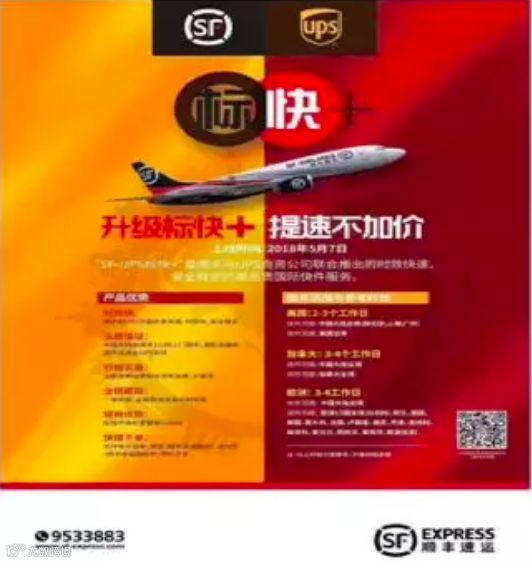 5月7日,顺丰与UPS联合推出升级版“标快+”产品,并打出提速不加价的口号。与之前顺丰和UPS战略合作推出的经济型国际快递“SF-UPS直运+”,产品相比,此次升级版“SF-UPS标快+”不仅扩大了服务范围,还在时效方面进行了升级,双方合作进一步深入。
