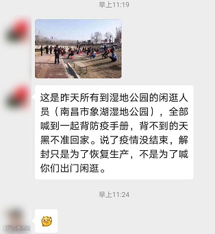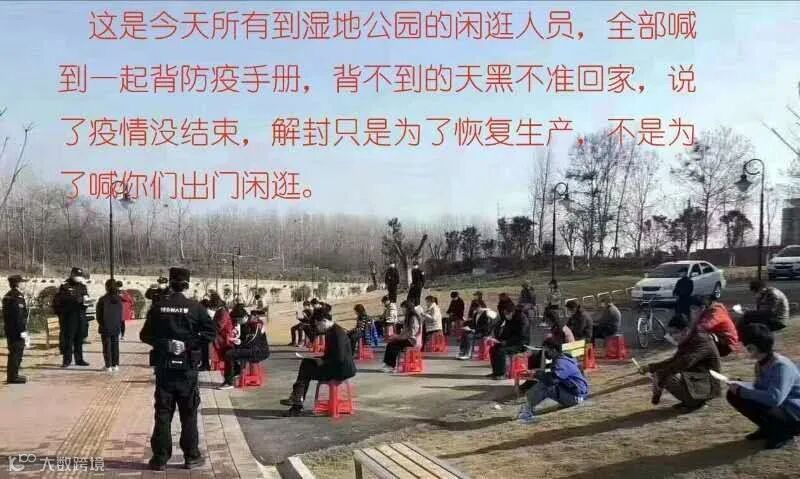 “湿地公园闲逛人员,人手一本防疫手册,