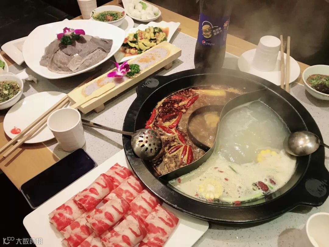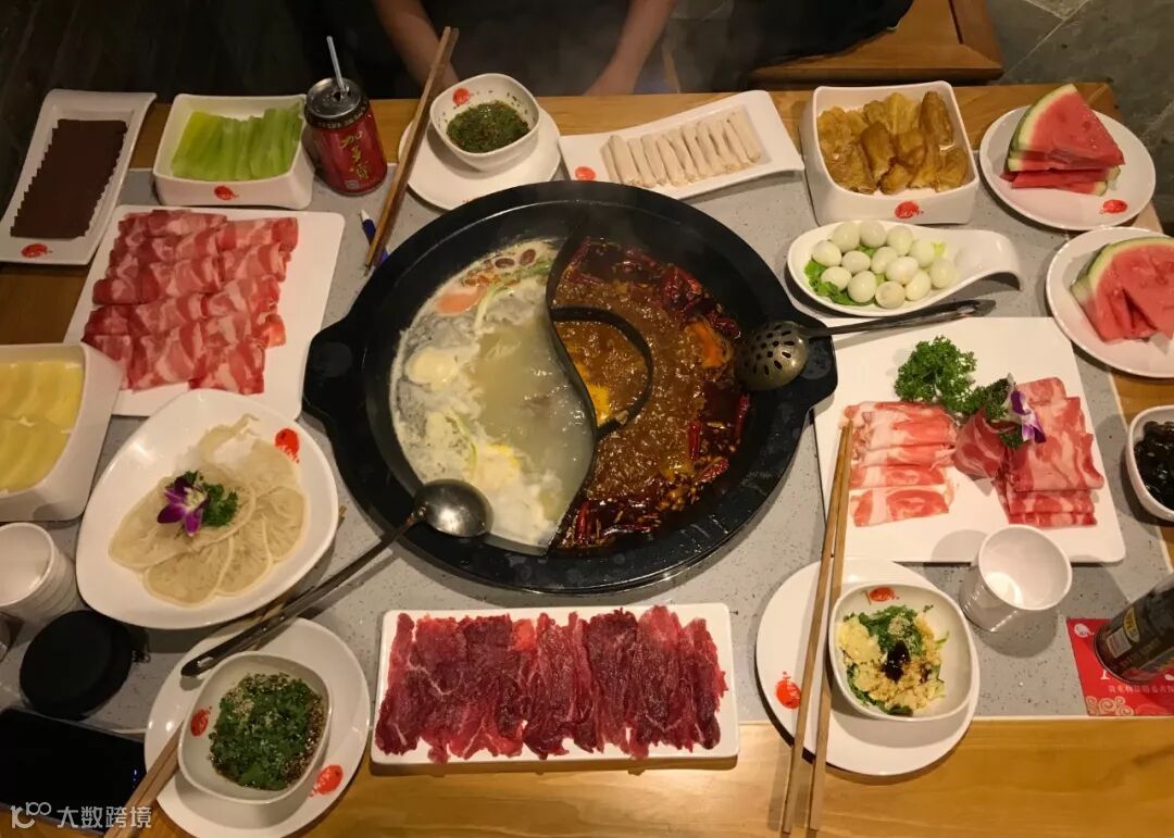 鸳鸯锅底,毛肚、肥牛羊、虾滑、鸭血